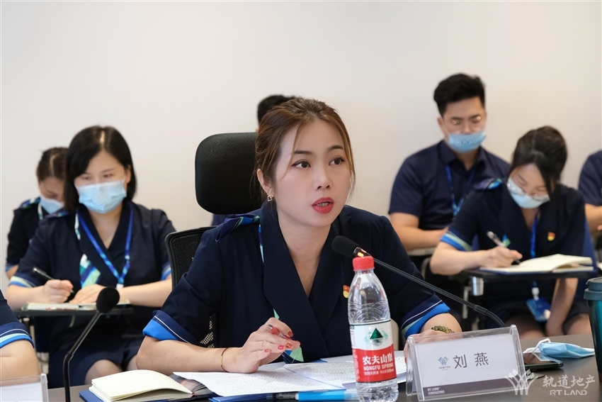 參觀結束后,閉梅秋一行聽取了軌道地產咨詢公司上半年經營工作情況匯報。劉燕從公司目前經營范圍、運營模式、企業(yè)定位、2022年上半年營銷工作措施及成效、黨風廉政建設工作情況等進行全面匯報。與會人員就目前在營銷業(yè)務工作方面存在的難點、經營困境進行了交流討論。