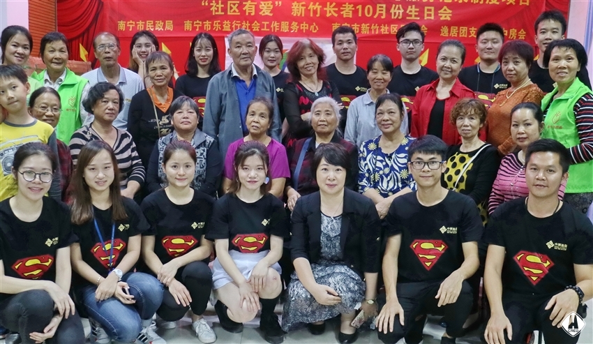 "祝你生日快樂!祝你生日快樂!" 祝福的歌聲和掌聲不斷響起來。2017 11 1 日下午,在青秀區(qū)新竹社區(qū),十幾個老人聚在社區(qū)的一間活動室里,參加 "社區(qū)有愛"新竹社區(qū)長者 10 月份生日會,一起慶祝生日。本次關愛社區(qū)老人公益活動由南寧市樂益行社會工作服務中心、新竹社區(qū)居委會和逸居公司團支部、中房會等聯(lián)合舉辦。